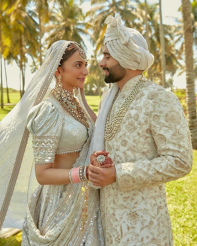 रकुल-जैकी ने सिख और सिंधी रीति रिवाज से शादी रचाई। जहां रकुल ने सिंधी रीति रिवाज से जुड़ी शादी की तस्वीरें सामने आई है।